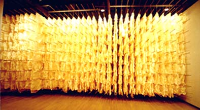 I've first got acquainted with his work early this year,( March 98 ) at The Art Gallery of Vancouver, the work - "Tau Of Rice Paper", an enormous column, 60 feet high made of 50 000 custom made sheets of rice paper, it was incredible sculpture made of this soft material that gave an impression of a hard and solid mass.